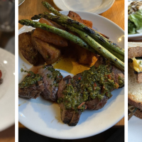Grilled Flank Steak, Broccolini, Hand-Cut Parmesan Truffle Fries, Chimichurri, Garlic Aioli (gf)